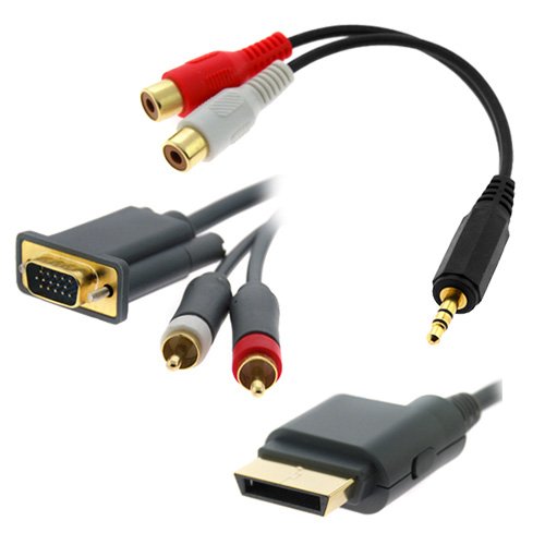 GTMax 6FT Gold Plated VGA Cable/Digital Optical Audio + 6inch 3.5mm Male to 2 RCA Female Y-Cable for Microsoft XBOX 360 Overview